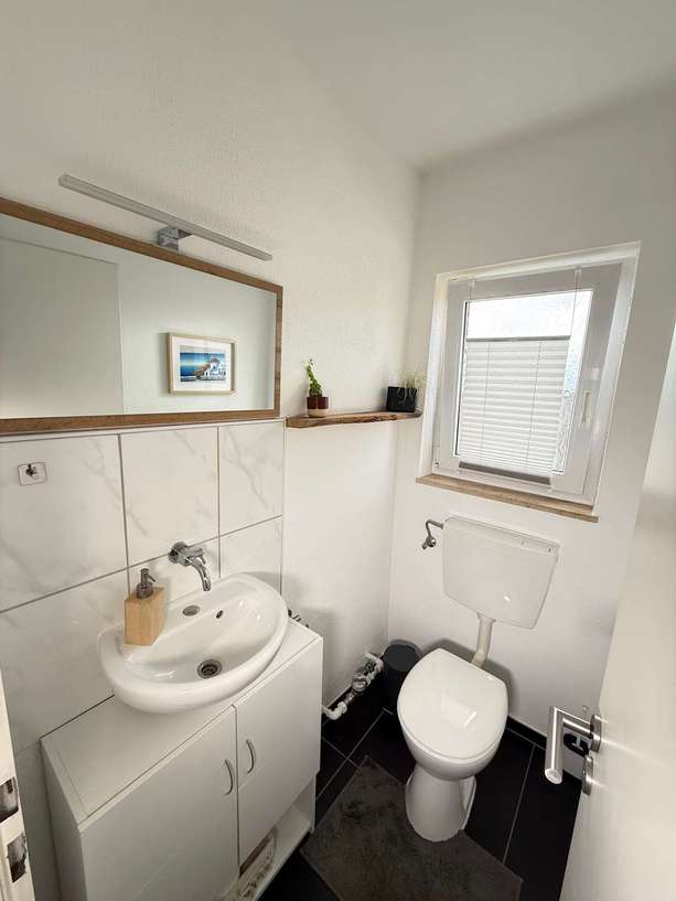 Die Wohnung verfügt über zwei gut geschnittene Schlafzimmer, ein Badezimmer mit Fenster sowie ein separates WC – ebenfalls mit Fenster.