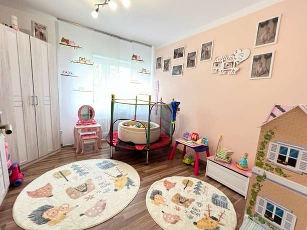 Diese Wohnung setzt sich wie folgt zusammen: Flur, Badezimmer, Wohnzimmer, Schlafzimmer, Kinderzimmer und Gäste WC.