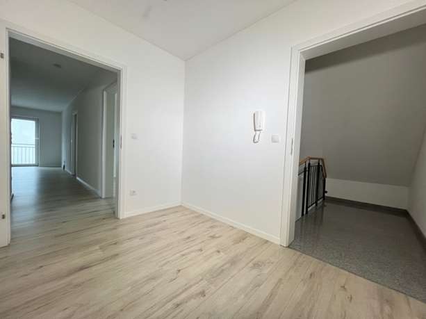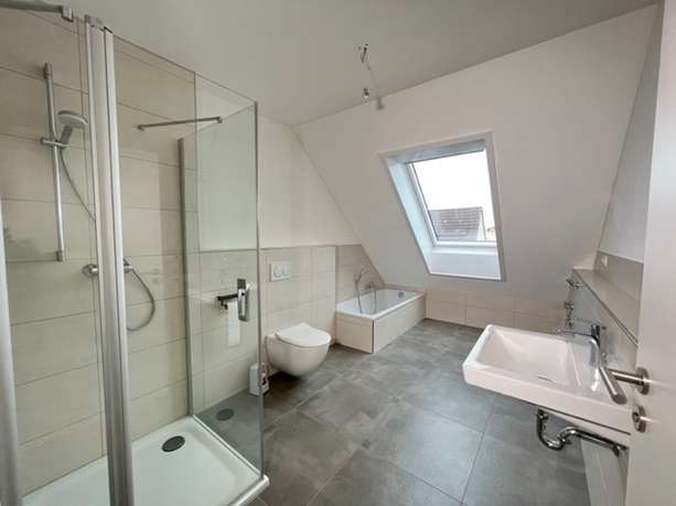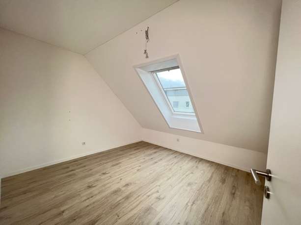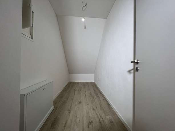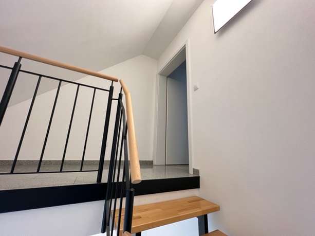 Sie wurde komplett renoviert und ist mit einem neuen Laminatboden und einem neuen Bad mit modernen großformatigen Fliesen ausgestattet. Die Dachschrägen verleihen der Wohnung ihren besonderen Charme, weiße Türen geben den Räumen einen cleanen Look und im Zusammenspiel mit dem dunklen Laminat ergibt es eine schöne Wohlfühl-Atmosphäre.