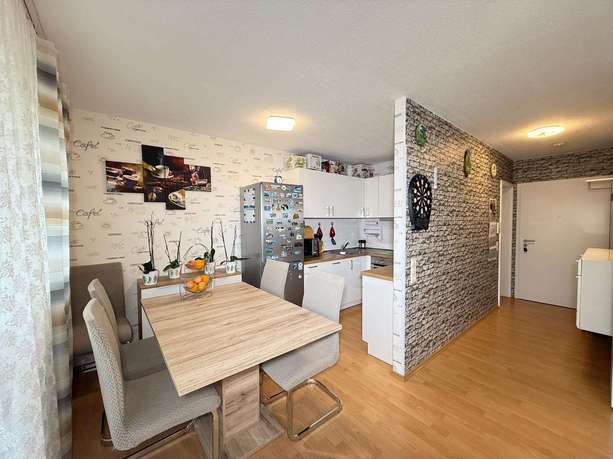 Die Einbauküche ist bereits im Kaufpreis enthalten und bietet alles, was man zum Kochen braucht. Vom hellen Wohnzimmer aus gelangt man auf die schöne Terrasse, die zum Entspannen und Verweilen im Freien einlädt.