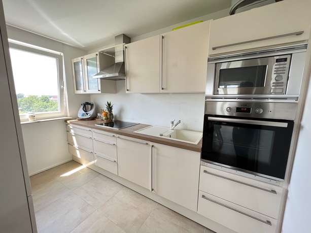 - Die Einbauküche mit allen Elektrogeräten ist im Kaufpreis inbegriffen.
